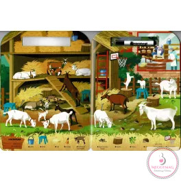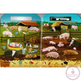 Mit ad hozzá a sorozat különlegessége? A letörölhető, filctollal használható oldalakon a „keresd meg és karikázd be” mechanika azonnali sikerélményt kínál. A tematika a gyerekek természetes kíváncsiságára épít: a tanyán zajló élet tele van mozgalmas jelenetekkel, állathangokkal és ismerős tárgyakkal, amelyekkel könnyű kapcsolatot teremteni. A vizuális rejtvények változatos nehézségűek, így az óvodás korosztály különböző szintjein is motiváló kihívást jelentenek.