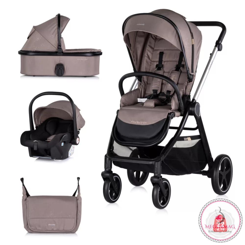 Kényelmes és praktikus 3 az 1-ben babakocsi a Chipolinotól. Könnyedén sportrésszel is összecsukható. Autóshordozójához bázistalp is vásárolható, így ISOFIXel is rögzíthető az autóba.
