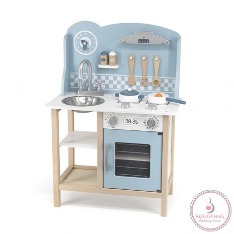 Kezdődhet a sütés-főzés. A kis szakácsok álma ez a gazdagon felszerelt fa játékkonyha.