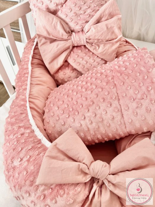 Phoebe – Puha babatakaró 70×90 cm | Púder rózsaszín pamutvászon és buborékos minky, antiallergén töltettel