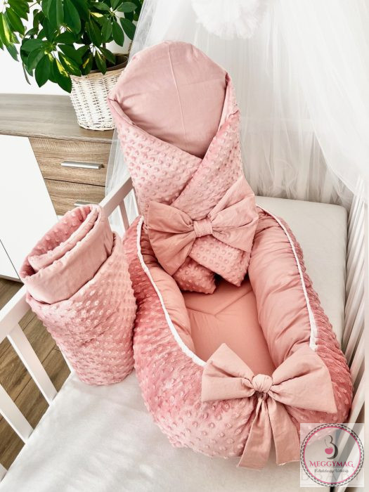 Párosítsd a Phoebe takarót púder színű pólyával vagy babafészekkel a bbaby kollekcióból, és alakíts ki harmonikus, kislányos babakuckót már az első pillanattól