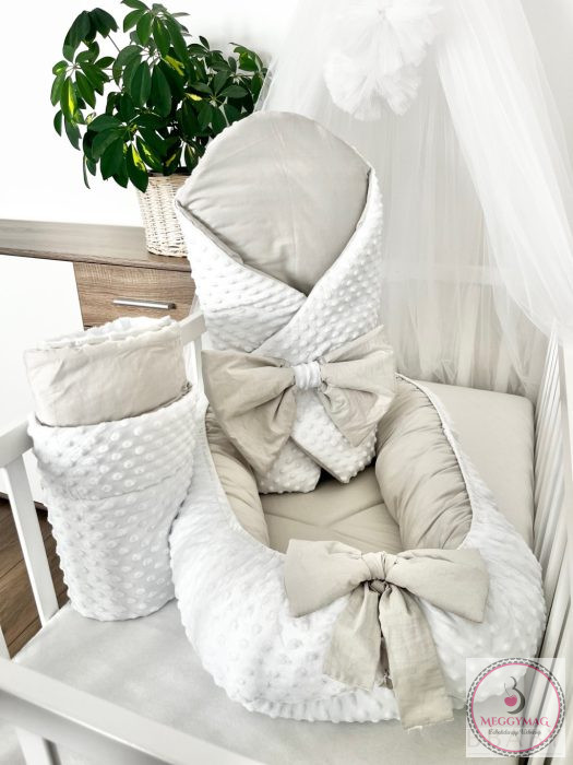 A Ross puha babatakaró igazi meleg kuckót nyújt kisfiadnak a nap minden pillanatában. A letisztult szürke pamutvászon külső és a fehér buborékos minky belső nemcsak esztétikus és harmonikus párosítás, hanem maximálisan kényelmes és biztonságos választás is már újszülöttkortól.