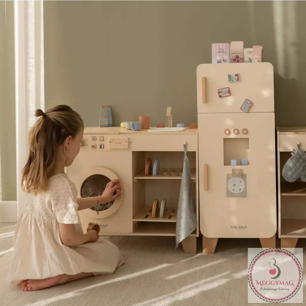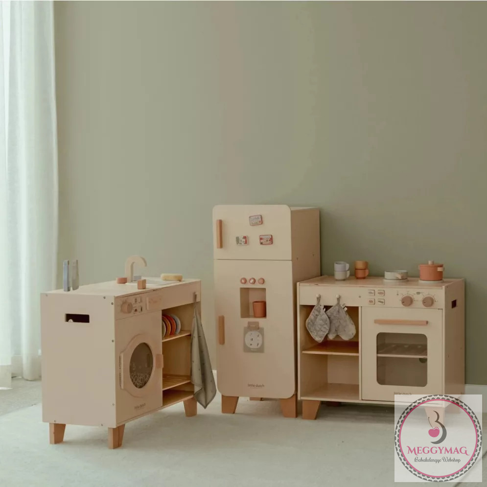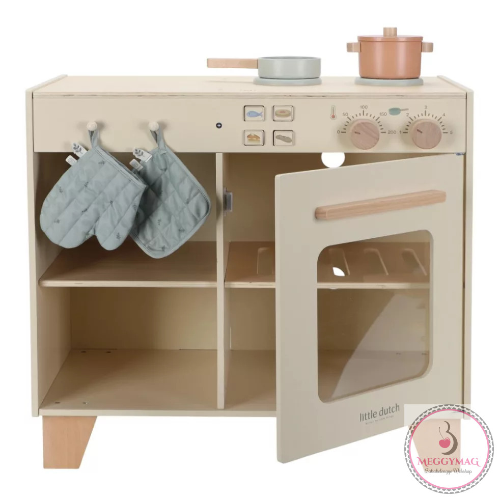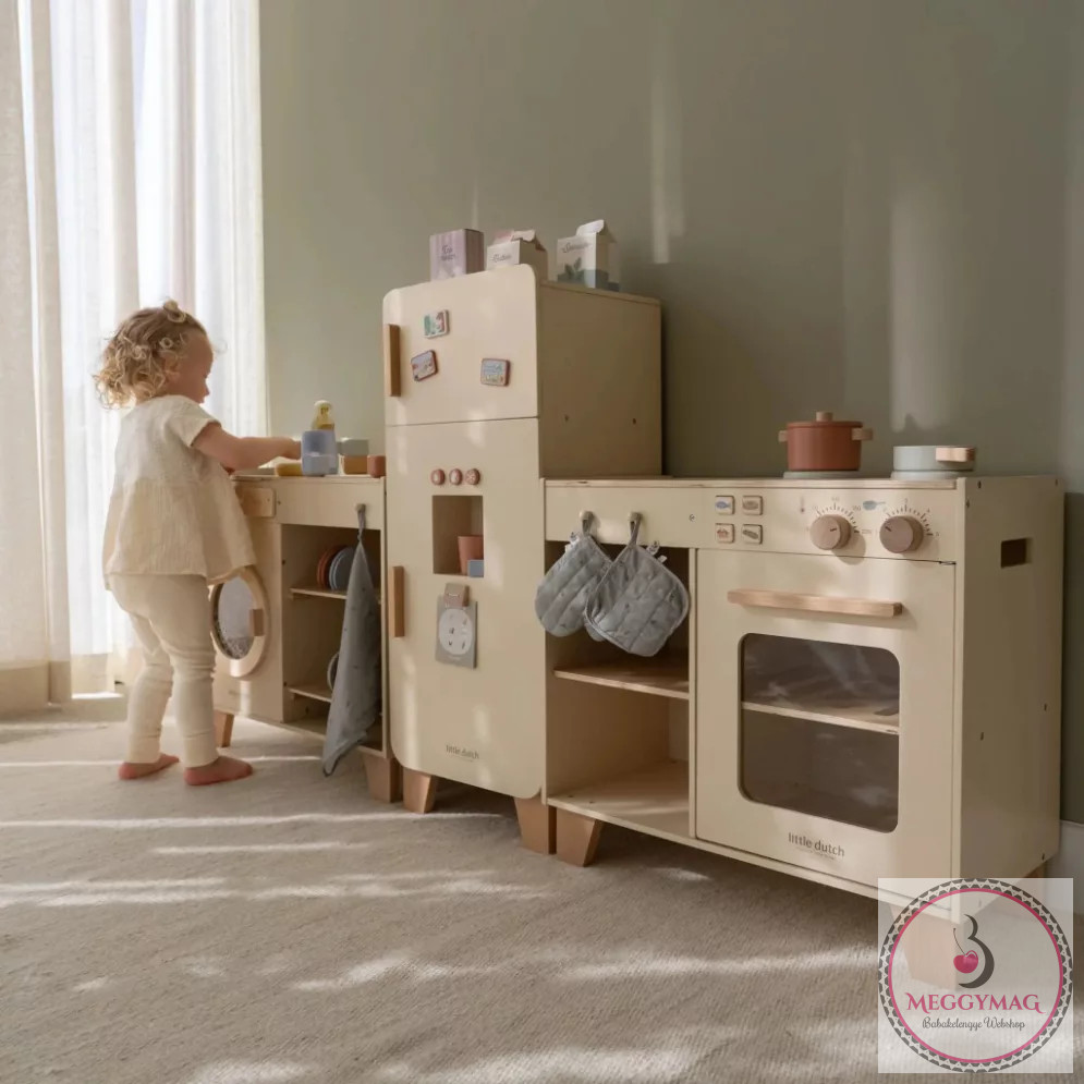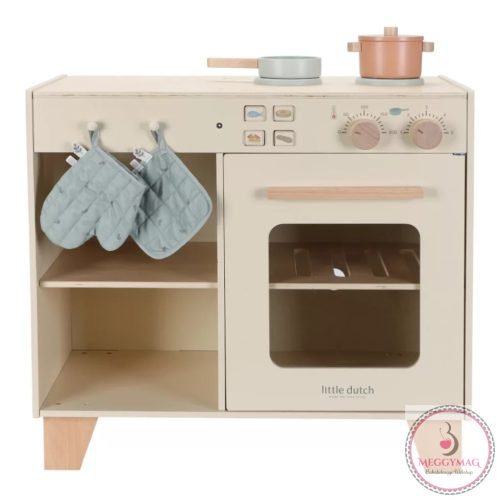 Tökéletes választás kis séfeknek, akik imádnak főzőcskézni és szerepjátékokat játszani. Kombináld a Little Dutch hűtőszekrénnyel vagy mosogatógéppel, hogy teljes konyhát alakíthass ki a gy erekszobában – ahol minden nap új „menü” születhet!