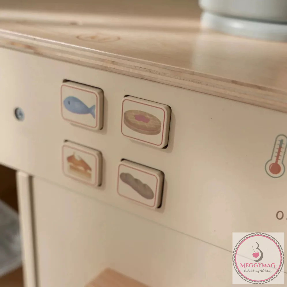 A konyha minden részletében gondosan kidolgozott, a gombok kattannak, az ajtók nyílnak, így igazán valósághű élményt nyújt. A természetes fa színek időtálló eleganciát sugároznak, így tökéletesen illeszkedik bármely gyerekszobába.