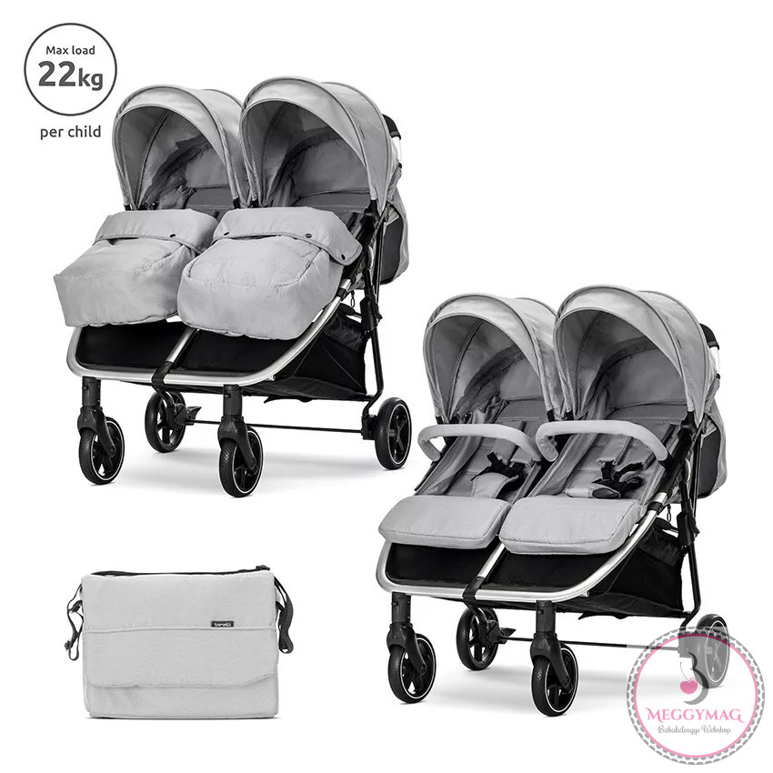 A Lorelli Duo ikerbabakocsi két egymás mellett elhelyezkedő üléssel rendelkezik, kényelmes használatot biztosít az ikerbabáknak.