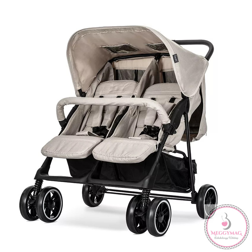 A Lorelli Twin ikerbabakocsi két egymás mellett elhelyezkedő üléssel rendelkezik, kényelmes használatot biztosít az ikerbabáknak.