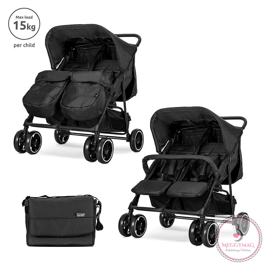 Lorelli Twin iker babakocsi - Black + táska