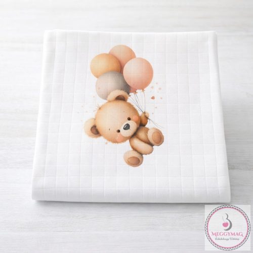 Mintás textil pelenka - Maci bézs lufival