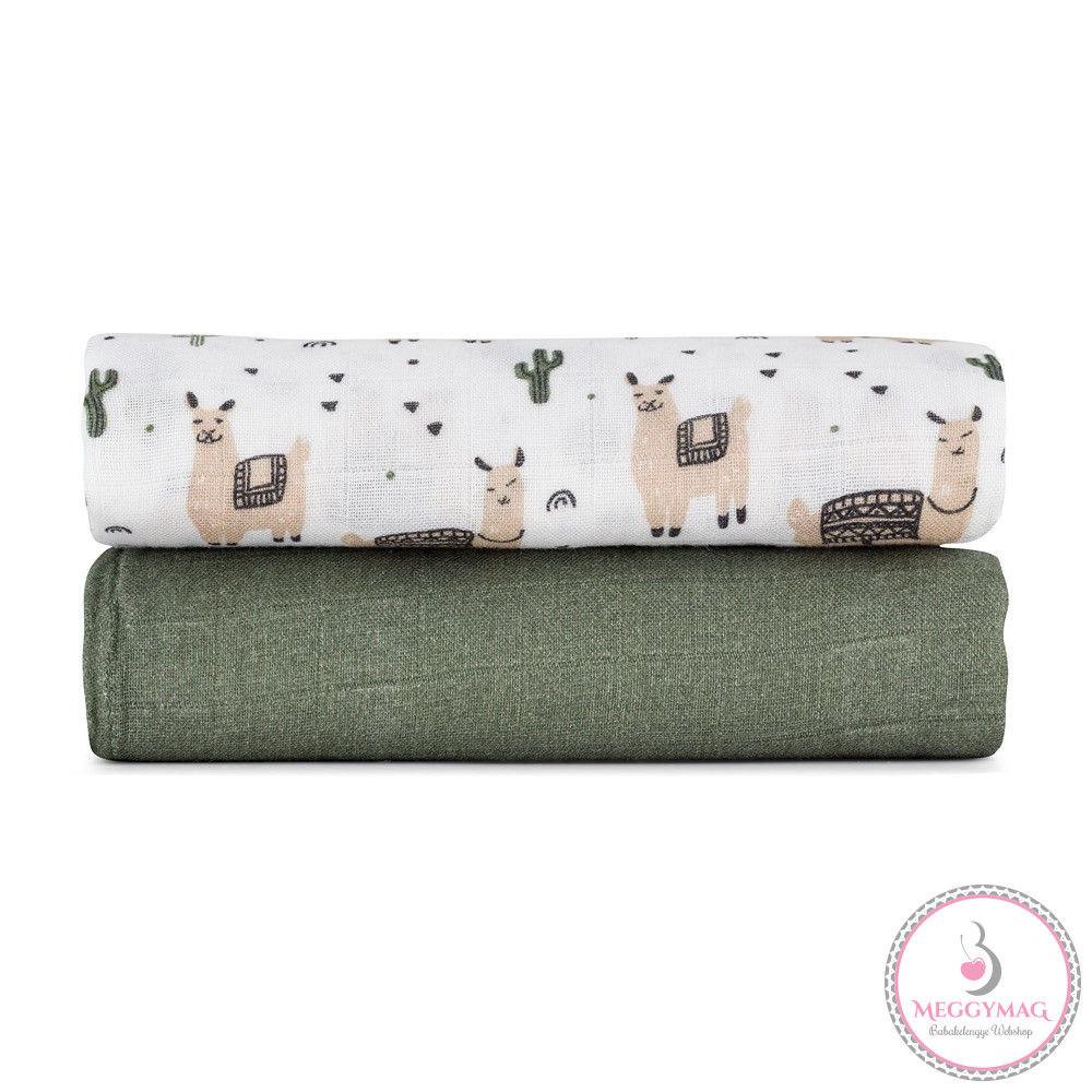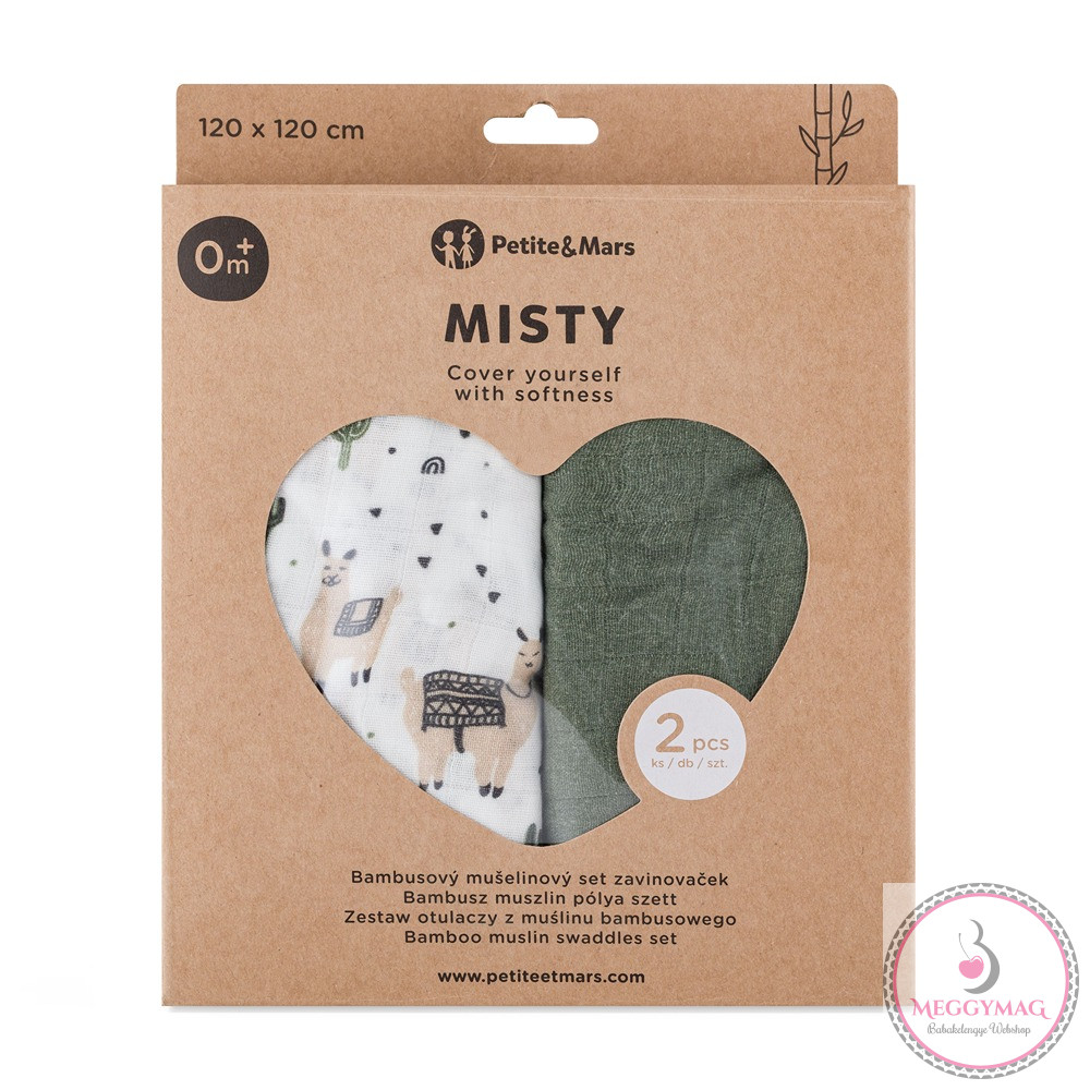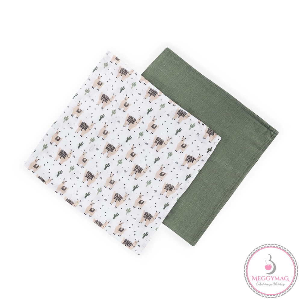 PETITE&MARS Bambusz muszlin 2db-os kifogó szett Misty Llama Vibes, 120 x 120 cm