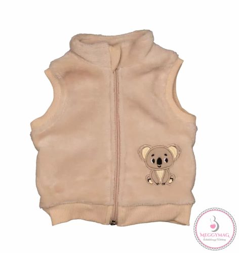 Fedezd fel ezt a gyönyörű, koala mintával díszített wellsoft kisfiú baba mellényt! A homokszínű mellény elöl cipzáras, ami könnyű és gyors öltöztetést tesz lehetővé. A minta egyedivé és aranyossá teszi a ruhadarabot, ami garancia arra, hogy a kisfiúd a középpontba kerül mindenhol. A 100% poliészter anyag gondoskodik arról, hogy a mellény puha, kényelmes és extra meleg legyen, tökéletes választás a hideg hónapokra. Büszkén mondhatjuk, hogy ez a mellény egy minőségi magyar termék. Az I. osztályú minőség garancia arra, hogy a mellény hosszú ideig tartós marad, és kisfiadnak a legnagyobb kényelmet nyújtja.